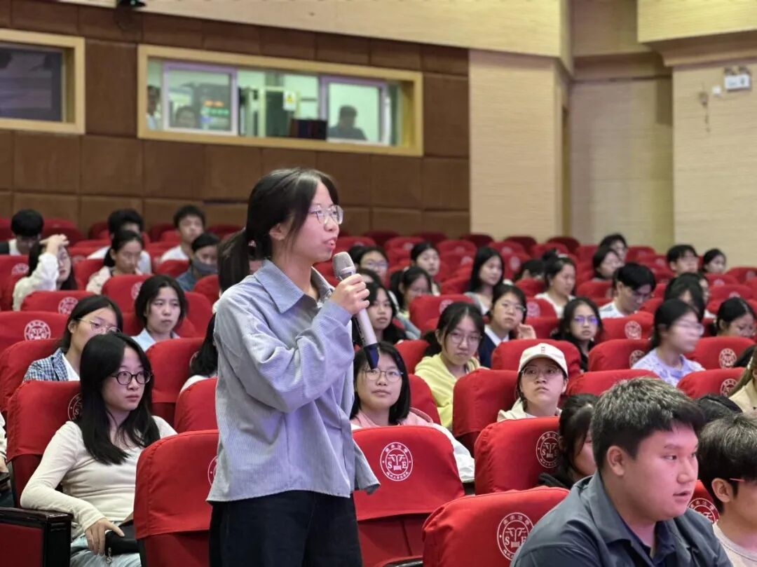 本次活动设置“主持人与嘉宾对谈+自由问答”两个环节:前半场由主持人代同学提问,围绕行业大势、岗位画像、学术深造与能力储备展开;后半场面向全场开放提问,现场提问踊跃,互动热烈。