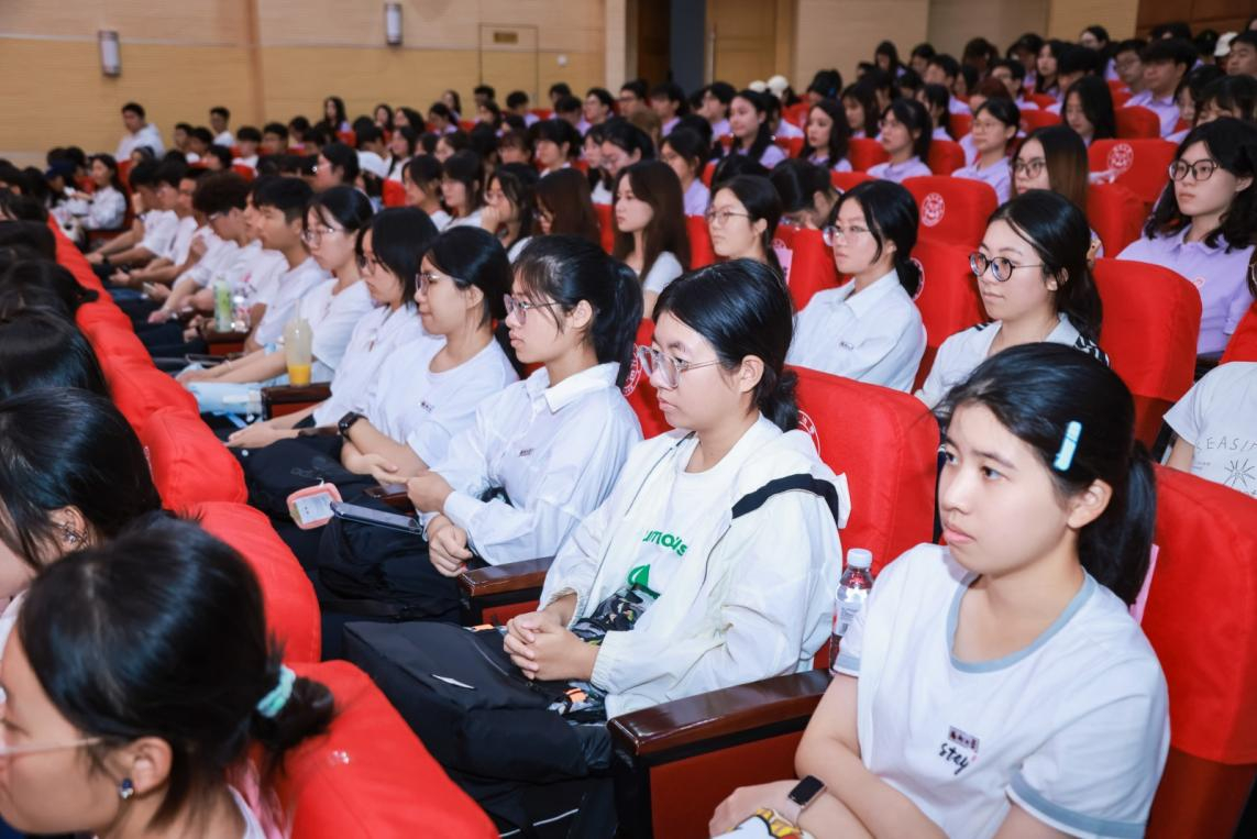 2025级本科生林刘心羽同学作为代表上台发言。她表示,来到法学院之后,法律于她从遥远抽象的概念逐渐成为可感的信仰。通过学习院训和研读法律著作后,更感受到法律是守护公平的准则。她认为,新时代的法律人应兼具专业的深度与初心的温度,为公平正义贡献力量。