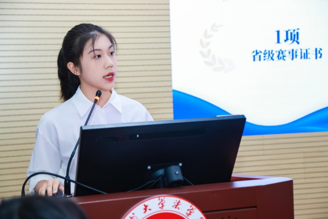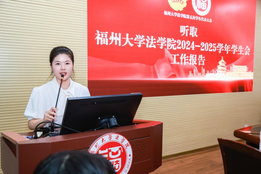 随后,法学院学生会执行主席曾思琦同学做详细工作报告,围绕“铸魂强基”“砺能精进”“笃行担当”“品牌跃升”四大主线,系统汇报了学生会在思想引领、组织建设、学风培育、权益服务、社会实践、文化宣传等方面的年度工作成果。