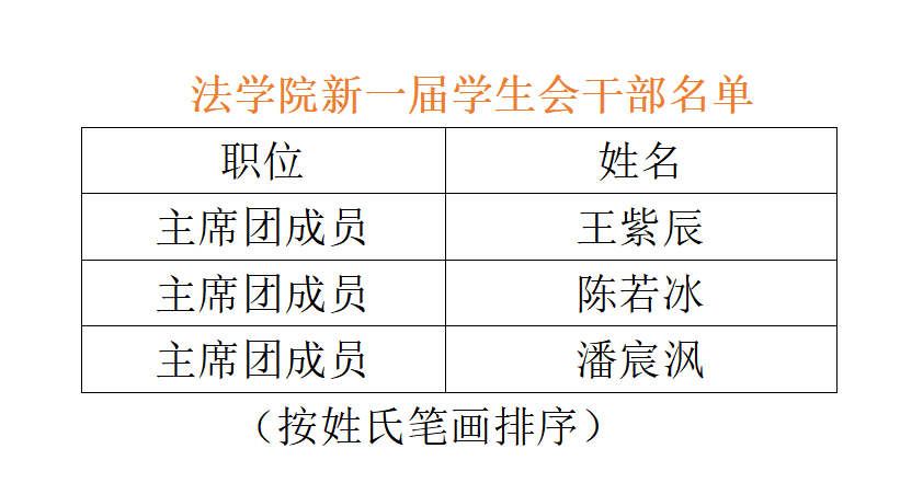 法学院新一届学生会干部名单(按姓氏笔画排序)
