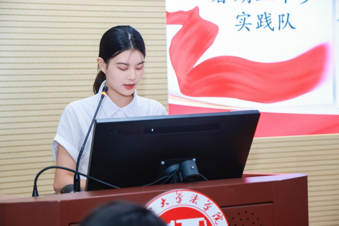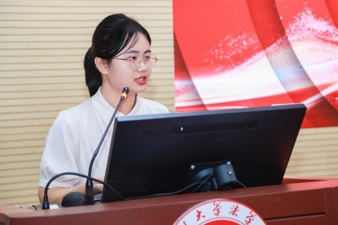 数学与统计学院学生会主席团成员刘树涵同学上台致辞,对法学院学生会的工作成效表示赞扬,肯定法学院学生会秉持“全心全意为同学服务”的宗旨,积极发挥联系同学的桥梁纽带作用,根植同学、砥砺奋进,积极维护同学权益、回应同学诉求、服务同学成长,引导同学全面发展,并期待未来进一步加强两院合作交流。