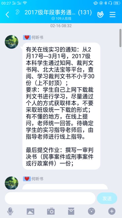 受此次疫情影响,2017级法学专业毕业实习采取“网上实习+集中实习”的方式进行,自2月17日至返校期间,学院通过QQ群、微信群等网络方式指导学生进行线上实习,相关学生需要完成在线专业实习,通过知网、中国裁判文书网、北大法宝等平台,查阅学习裁判文书,完成相关诉讼文书的写作练习。