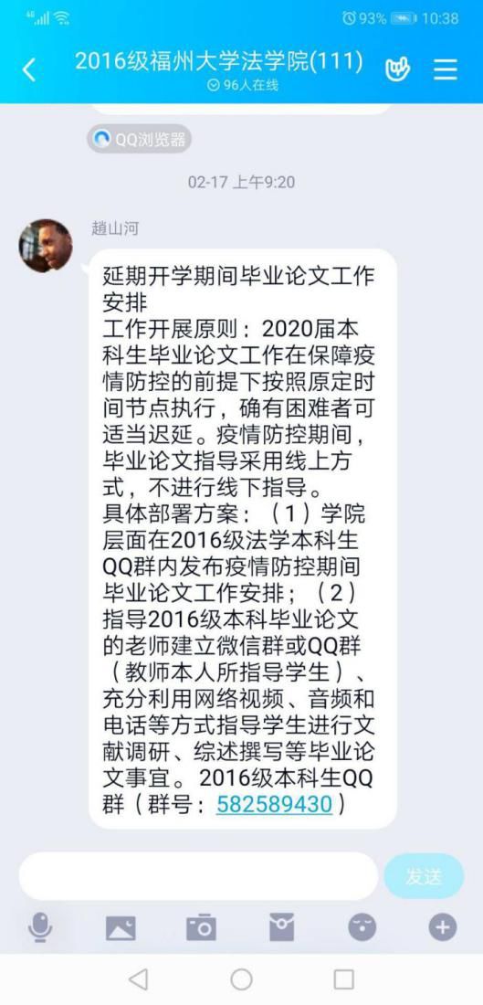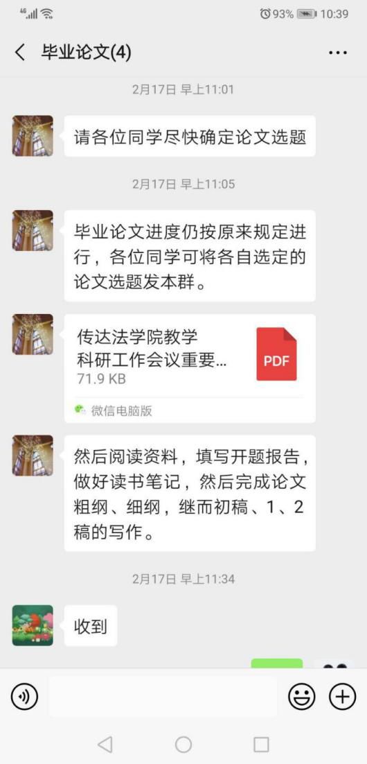延期开学期间,2020届本科生毕业论文工作在保障疫情防控的前提下将按照原定时间节点进行。此间,毕业论文指导均采用线上方式进行,相关指导教师利用网络视频、音频和电话等方式指导学生进行文献调研、综述撰写等毕业论文事宜。