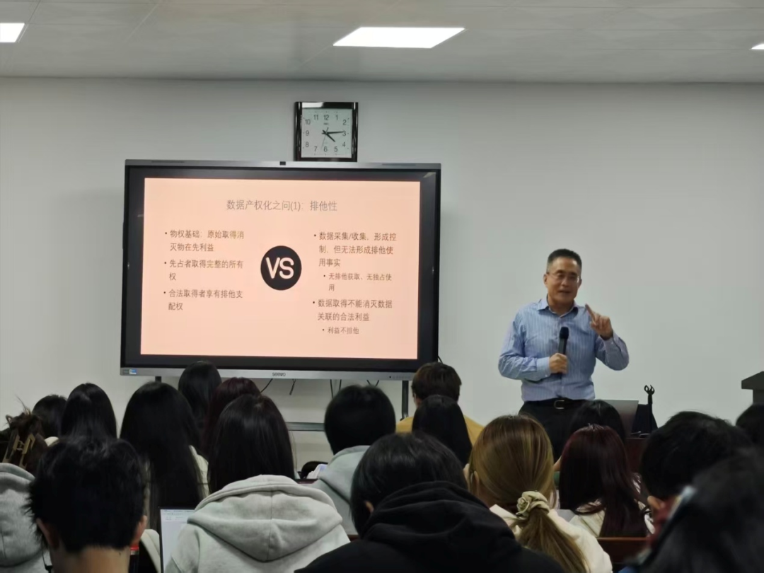 在讲座的总结部分,高教授将数据法律逻辑的变革概括为“三大根本转向”:其一,从“赋权逻辑”转向“限权逻辑”,重点划定数据使用的禁止性与边界性规范;其二,从“形式合规”转向“实质保护”,构建覆盖数据全生命周期的过程监管机制;其三,从“理论先行”转向“实践导向”,推动数据规则在不同场景中可落地、可操作、见实效。上述观点为构建中国自主的数据治理知识体系提供了重要理论启示,也为在场师生带来了深刻的学术思考。